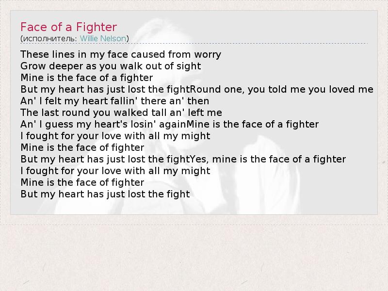 А как ты думаешь, о чем песня "Face of a Fighter" ?