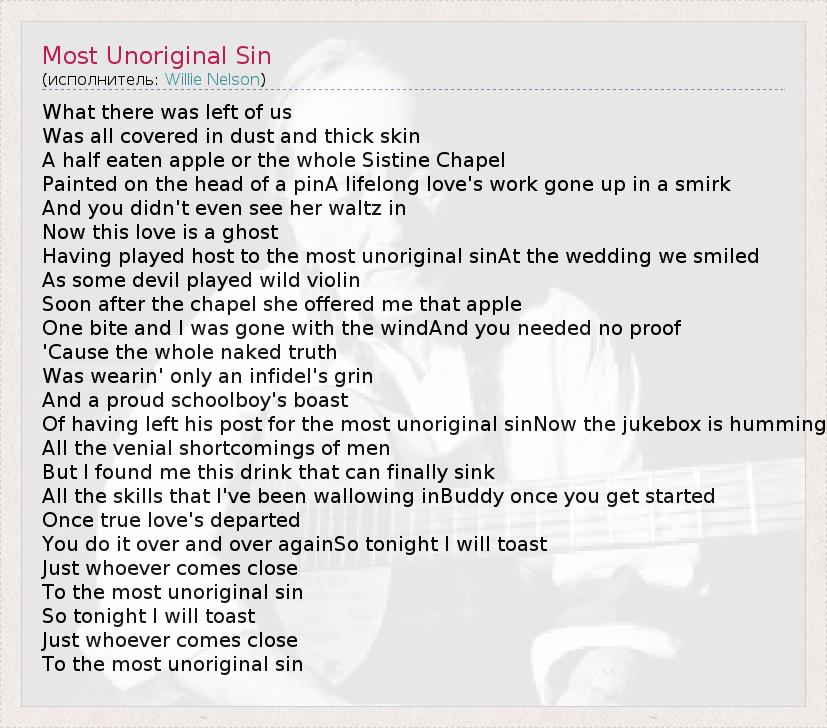 А как ты думаешь, о чем песня "Most Unoriginal Sin" ?