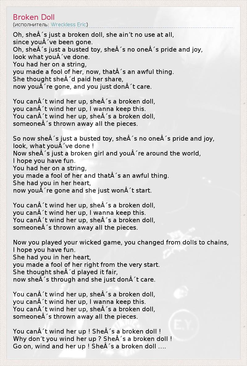 А как ты думаешь, о чем песня "Broken Doll" ?