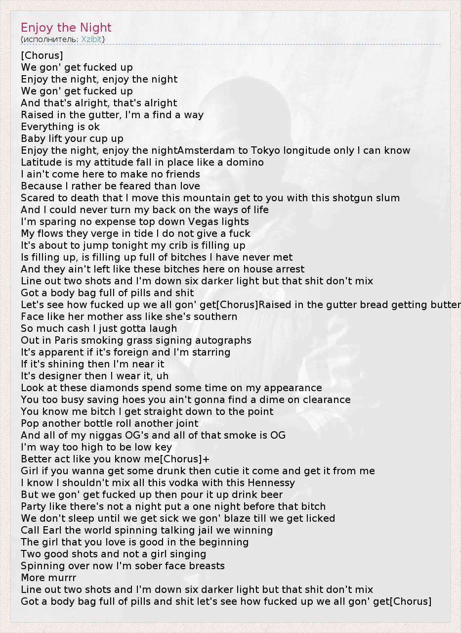 А как ты думаешь, о чем песня "Enjoy the Night" ?