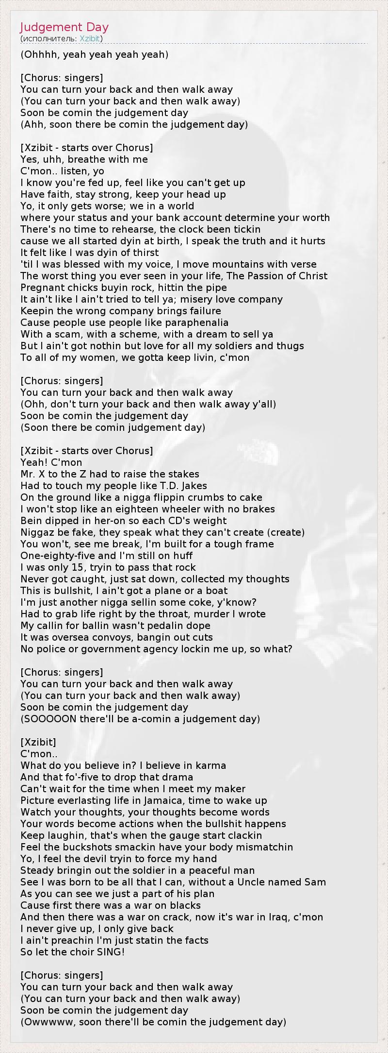 А как ты думаешь, о чем песня "Judgement Day" ?