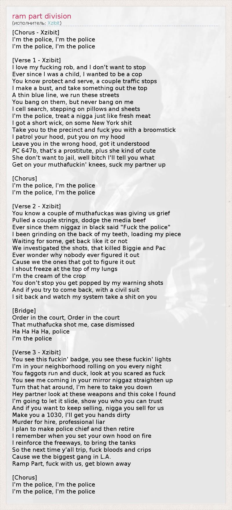 Ever since them niggaz in black said "Fuck the police"