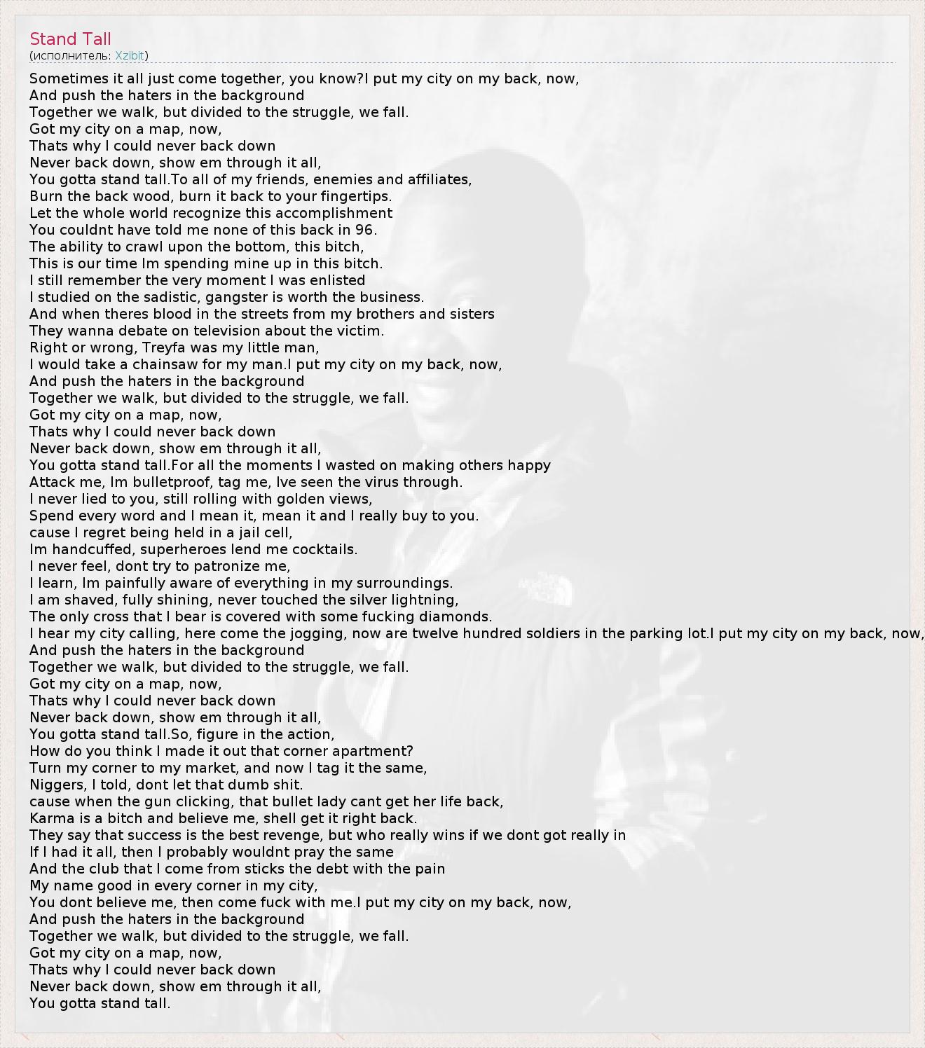 You gotta stand tall.To all of my friends, enemies and affiliates,