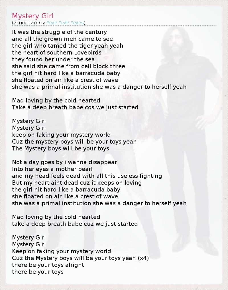 А как ты думаешь, о чем песня "Mystery Girl" ?