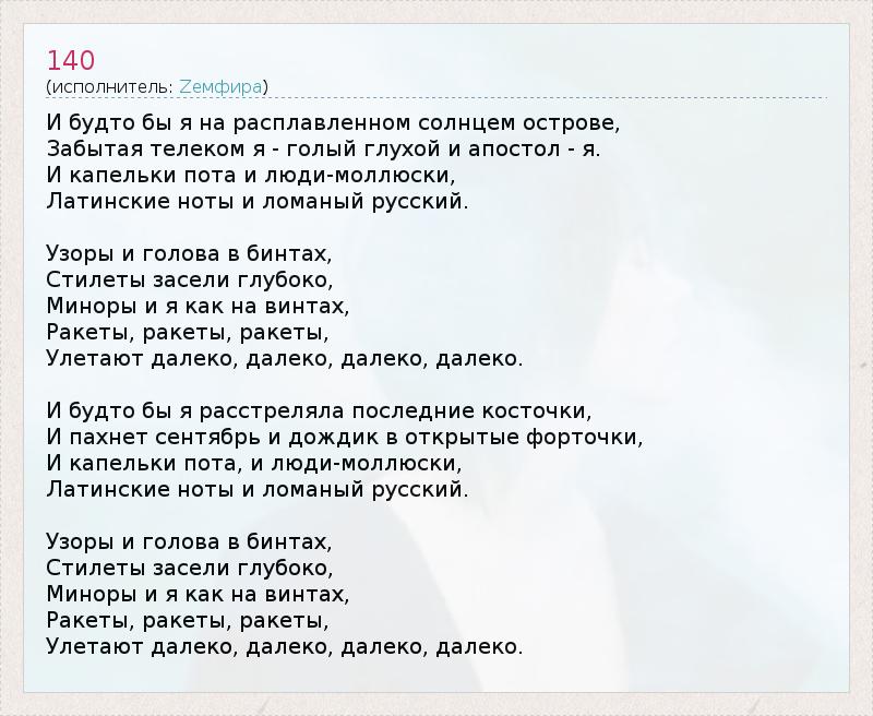 * Строка-рефрен «Привет, ромашки» в соответствующей песне — реальная фраза, которой Земфира приветствовала сотрудников уфимской радиостанции Европа плюс.