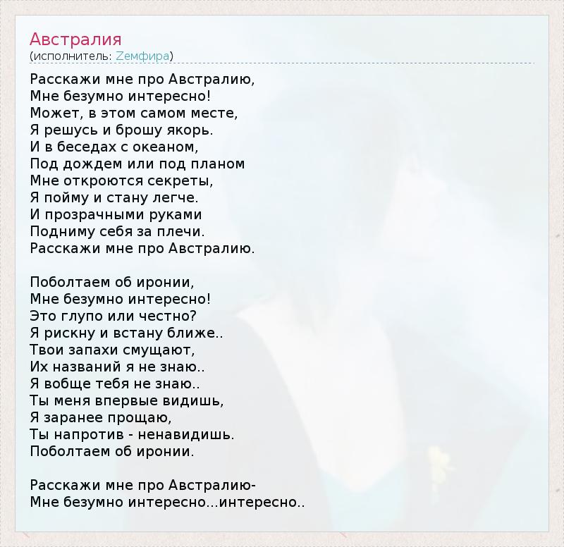 Это интересно:Земфи́ра Талга́товна Рамаза́нова (26 августа 1976, Уфа) — российская певица, музыкант, композитор и автор песен, выступающая под сценическим именем Земфира. Одна из самых коммерчески успешных исполнительниц в истории российской музыки. Известна своими музыкальными достижениями, вокальными способностями. Земфира стала олицетворением нового движения в русском роке, которое журналисты... продолжение