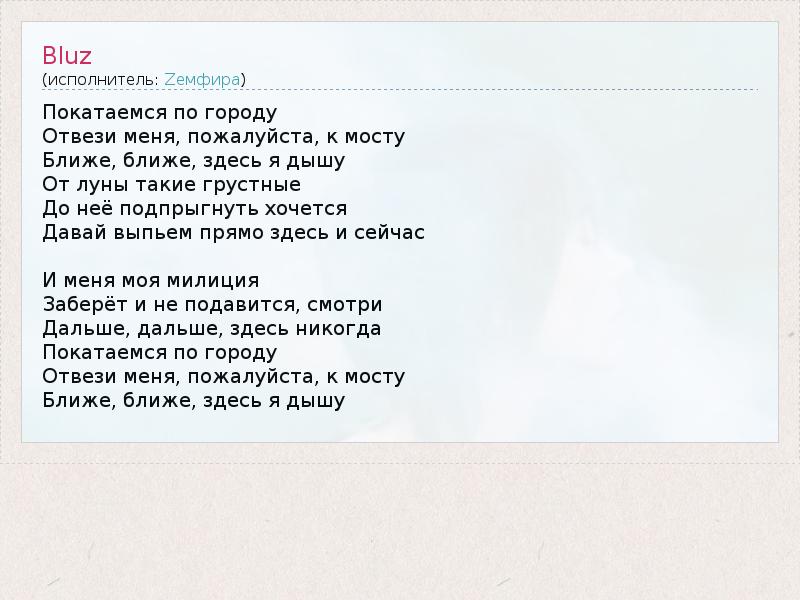 Земфира стала использовать больше электроники в аранжировках, хотя некоторые песни («Самолет») звучали в чистом вокальном исполнении с легчайшим клавишным сопровождением. Главным ударным хитом альбома стала песня «Небомореоблака», презентованная на «Максидроме» в 2004 году, в необычной «тяжёлой» аранжировке.