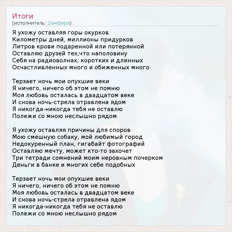 А как ты думаешь, о чем песня "Итоги" ?
