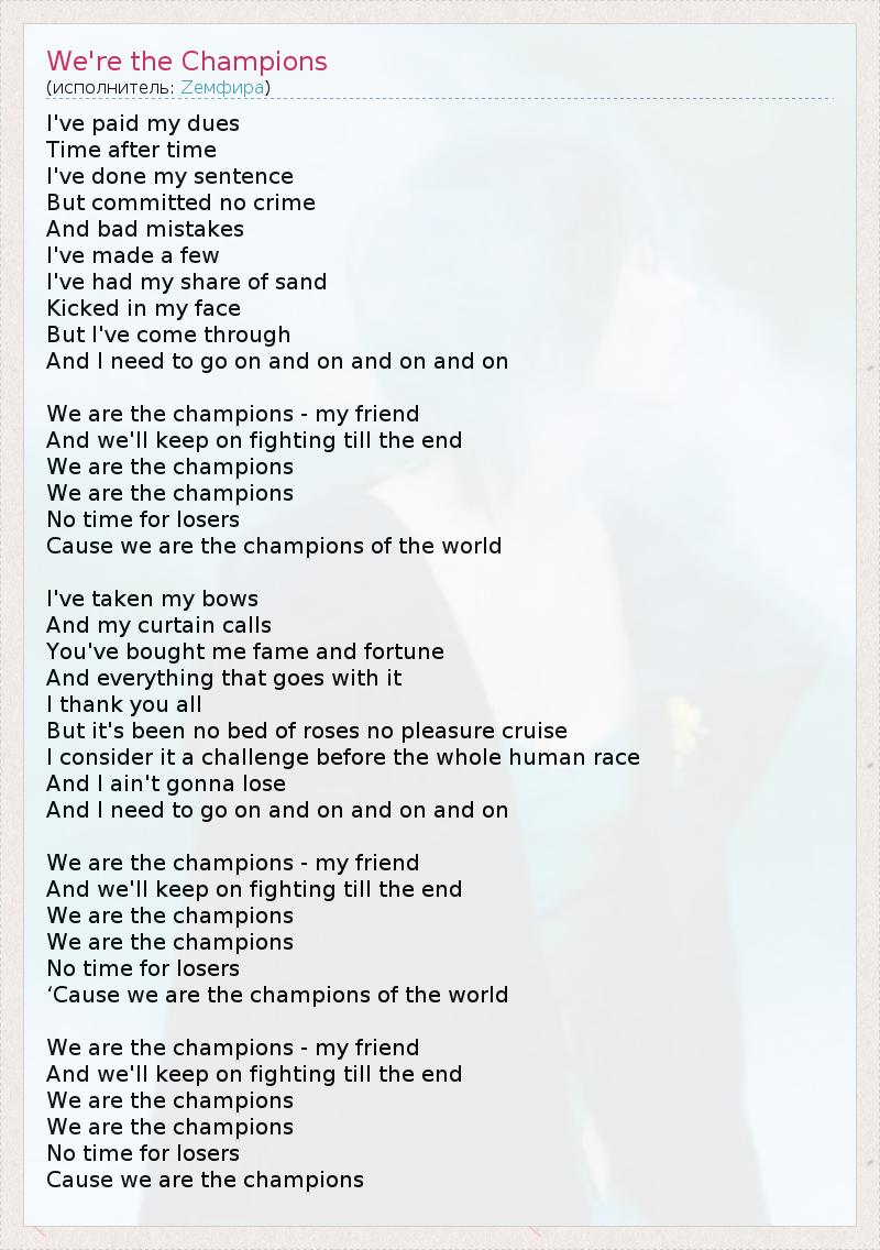 А как ты думаешь, о чем песня "We're the Champions" ?