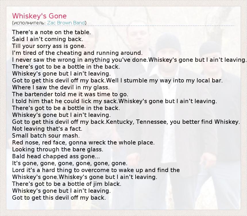 А как ты думаешь, о чем песня "Whiskey's Gone" ?