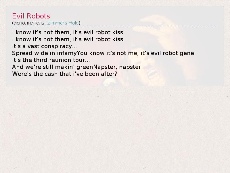 А как ты думаешь, о чем песня "Evil Robots" ?