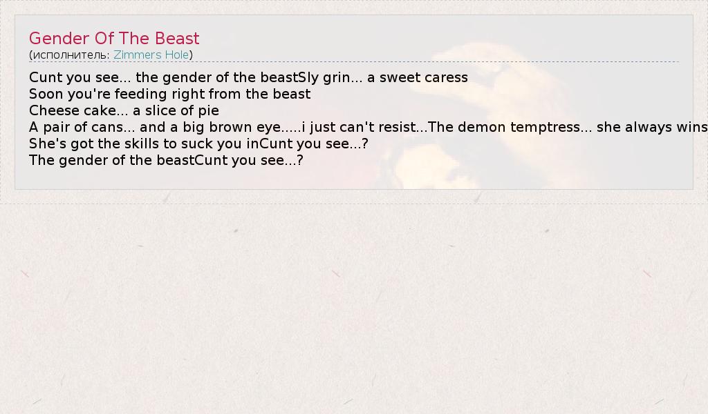 А как ты думаешь, о чем песня "Gender Of The Beast" ?