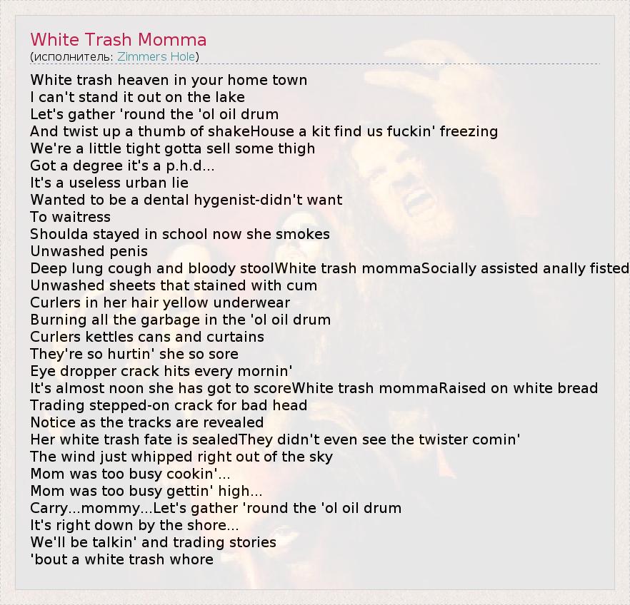 А как ты думаешь, о чем песня "White Trash Momma" ?
