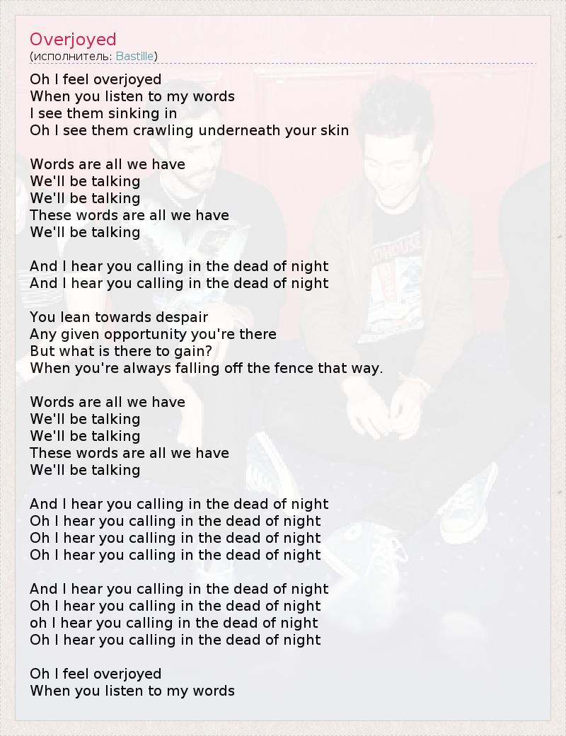 А как ты думаешь, о чем песня "Overjoyed" ?