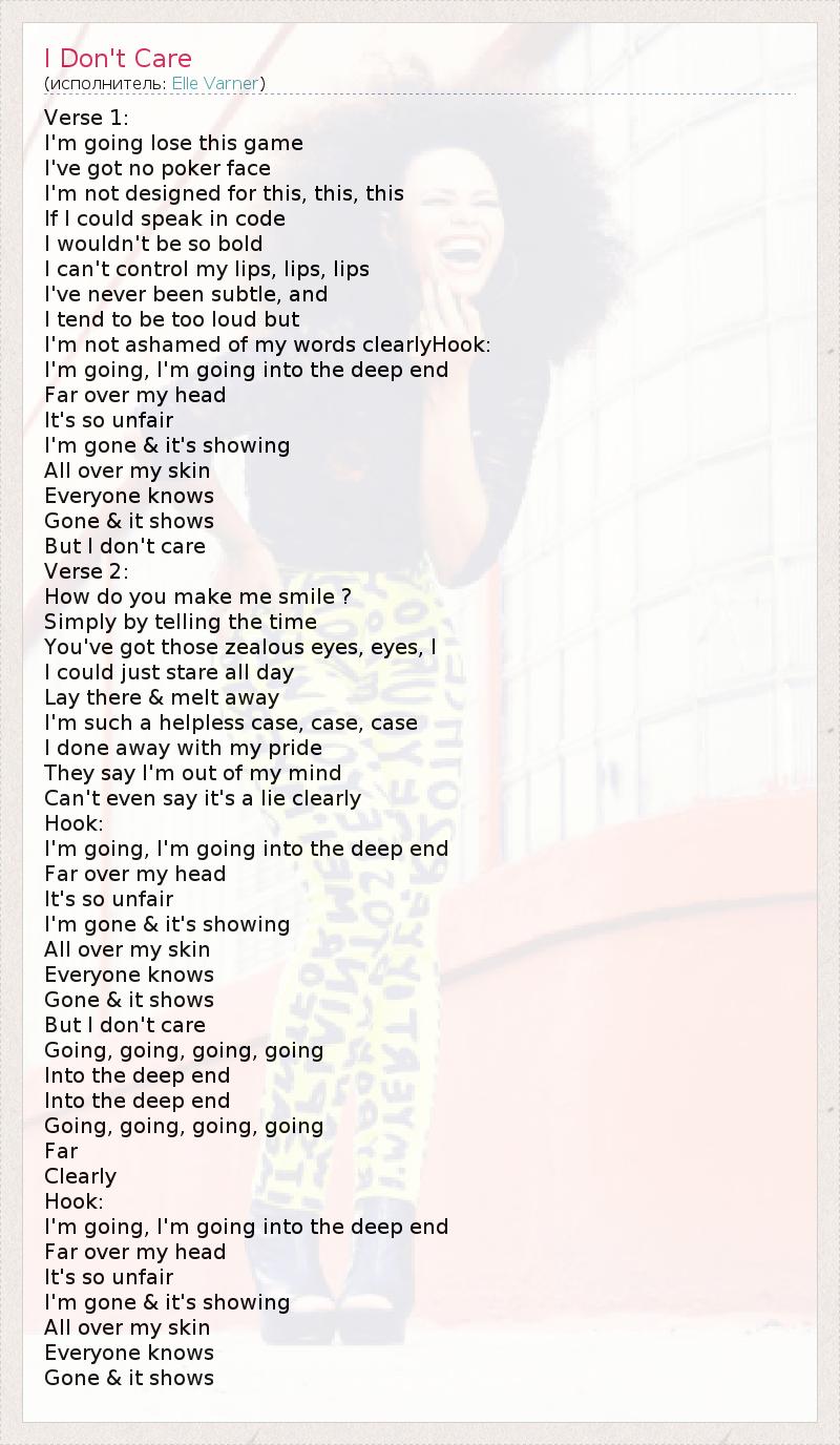 А как ты думаешь, о чем песня "I Don't Care" ?