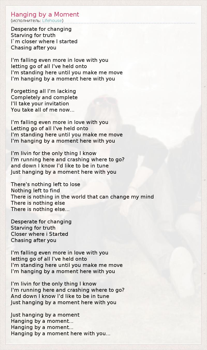 А как ты думаешь, о чем песня "Hanging by a Moment" ?