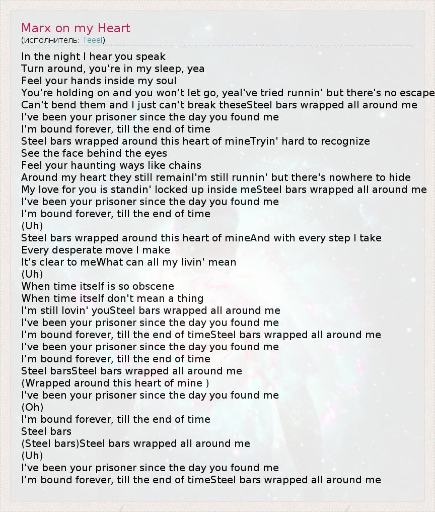 А как ты думаешь, о чем песня "Marx on my Heart" ?
